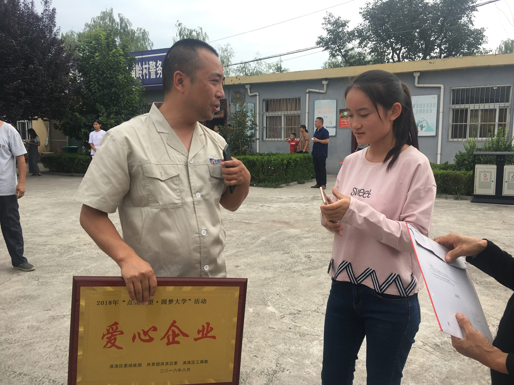 8.25日,金秋開學(xué)之際,由淇濱區(qū)委統(tǒng)戰(zhàn)部、共親團(tuán)淇濱區(qū)委、淇濱區(qū)工商聯(lián)組織愛心企業(yè)舉行2018年度“點(diǎn)亮希望,圓夢(mèng)大學(xué)”助學(xué)金發(fā)放活動(dòng)。我公司銷售部代表張經(jīng)理參加了此次助學(xué)捐贈(zèng)活動(dòng)。